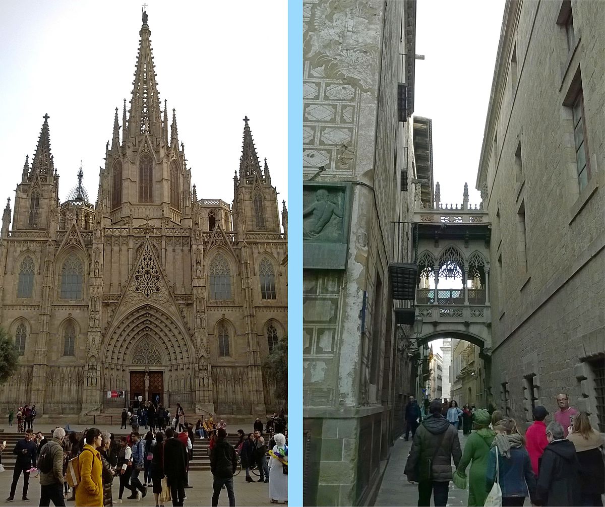 barcelona - catedral de la seu und pont gotic in der carrer del bisbe
