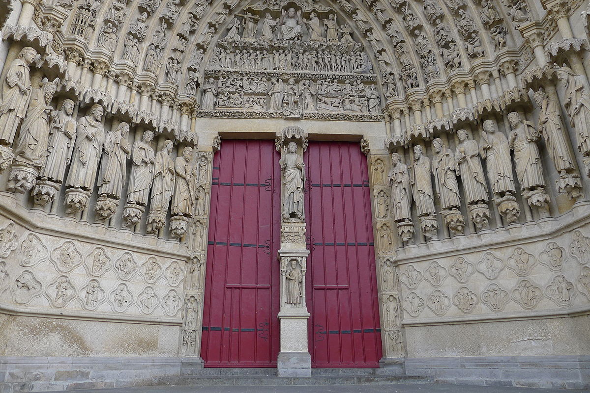 westfassade; königsgalerie unter der fensterrose (reims: darüber, ausgewogener)